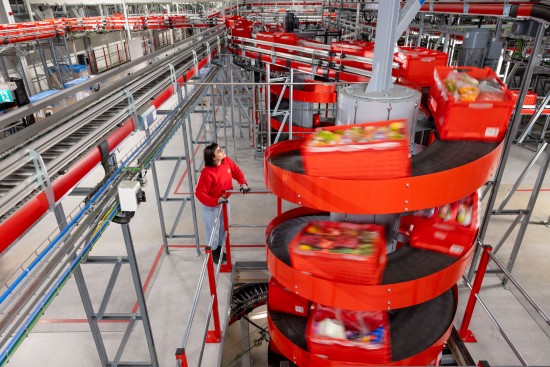 In Oberhausen werd recent al een distributiecentrum geopend. De boodschappen worden daar door robots in de kratjes voor de klanten gelegd. Dat is een gecompliceerd proces, want de ruim 15.000 producten in het assortiment vereisen allemaal een andere behandeling.