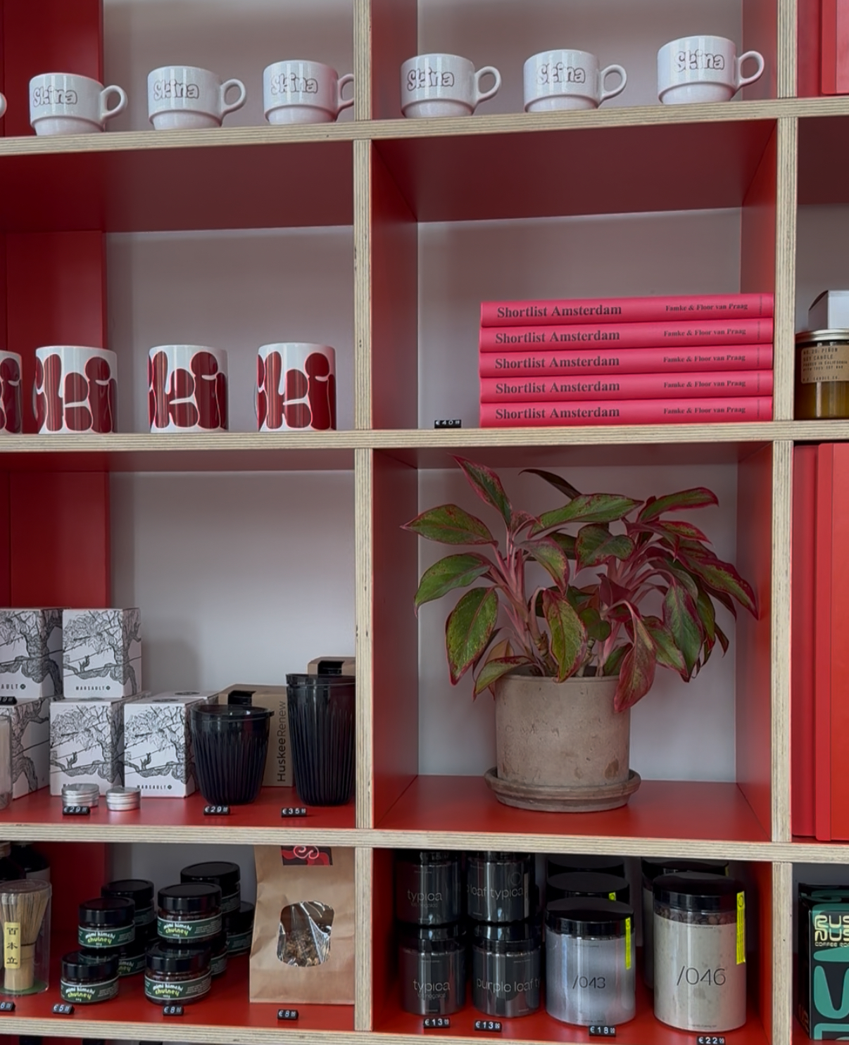 Skina in Amsterdam-West is een koffiezaak waar specialty coffee centraal staat. Liefhebbers kunnen er ook terecht voor pastries van verschillende kleinschalige bakkerijen in Amsterdam. Populair zijn ook de zeer Instagramwaardige kleurrijke matcha’s met mango, aardbei en felgekleurd schuim. De zaak heeft een felrode vloer, een rvs-bar met knalblauw blad en veel kunst aan de muren. In de grote koffiezaak exposeren verschillende kunstenaars hun werk, dat ook te koop is. Verder is er een kleine selectie aan retailproducten zoals hot sauces, geurkaarsen, matcha en koffiebonen voor thuis. En zoals het een hippe koffiezaak betaamt, is er ook Skina-merch te krijgen. Denk aan koffiekopjes en -mokken met het logo van Skina, maar ook aan t-shirts met de branding van de zaak.