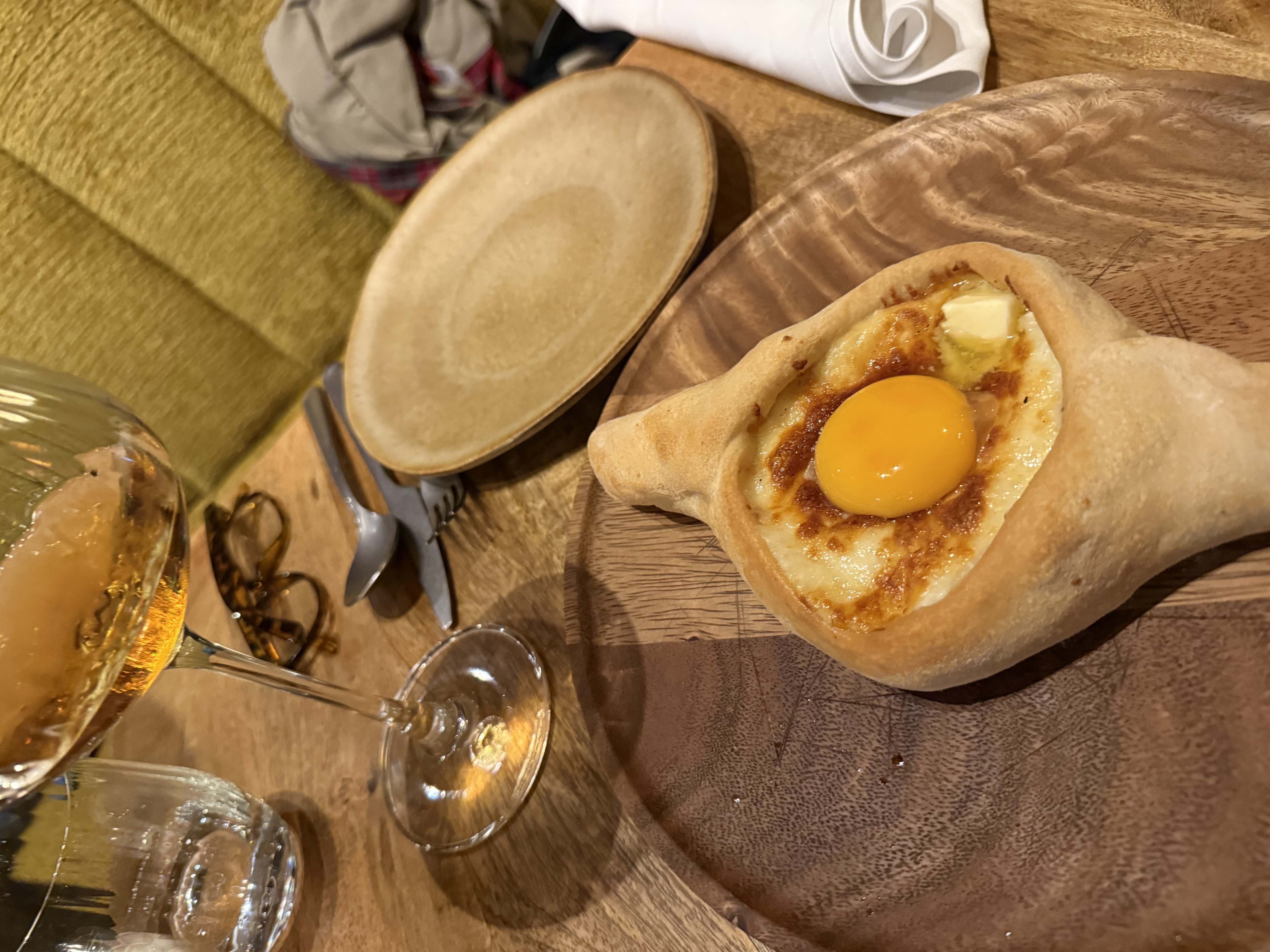 Op het menu van Amra vind je traditionele Georgische gerechten in een modern jasje. Denk bijvoorbeeld aan khachapuri, een bootvormig stuk deeg gevuld met pittige kaas, boter en een eidooier – die je na het serveren door elkaar roert. Een hardloper op de kaart is de klassieke khinkali, gevuld met varkens- en rundvlees. Khinkali zijn Georgische dumplings gevuld met vlees of groenten en bouillon. Je eet ze door het tuutje vast te pakken, de dumpling om te draaien, een hap te nemen en de bouillon eruit te zuigen. Daarna volgt de rest. Ook staan er grotere gerechten op de kaart, zoals khashlama: langzaam gegaarde short rib met knolselderijpuree en Georgische kruiden. Gerechten variëren in prijs van €6 tot €29.