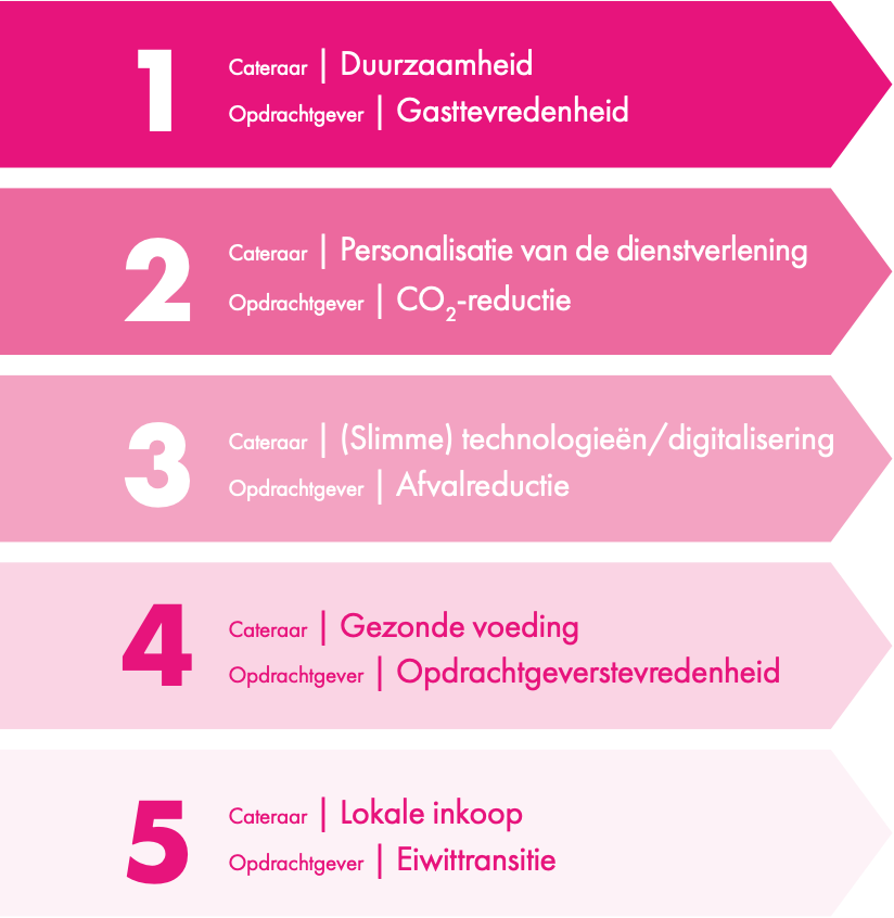 Cateraars ervaren dat de ambitieuze duurzaamheidsdoelen van opdrachtgever een flinke stempel drukken op de dagelijkse praktijk. In veel contracten zijn drie van de vijf belangrijkste KPI’s duurzaamheidsgericht. Opdrachtgevers stellen hoge eisen op het vlak van CO2-reductie, meer plantaardig aanbod en minder voedselverspilling.