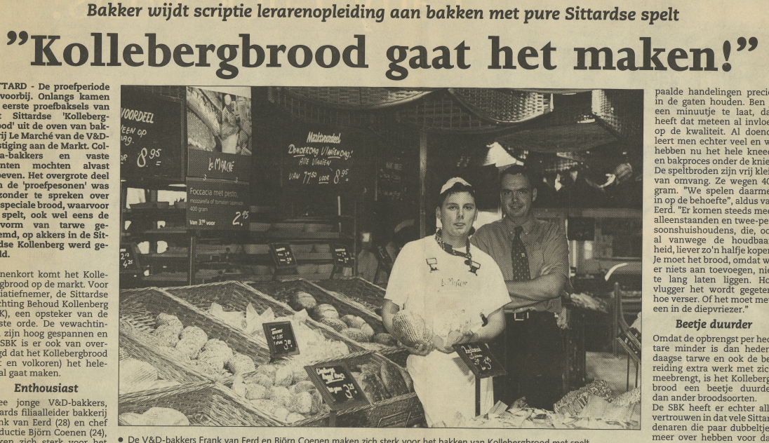 Van Eerd: “ De term ‘biologisch’ had toen nog nauwelijks marktwaarde – consumenten wilden er niet extra voor betalen.” Dat veranderde toen de Stichting Behoud Kollenberger in Sittard lokale boeren, molenaars en bakkers vroeg om een brood te ontwikkelen met lokaal spelt, een graan dat destijds niet veel werd gebruikt om brood van te maken. Het doel: niet alleen een bijzonder brood bakken, maar ook de Limburgse heuvels behouden tegen verstedelijking.