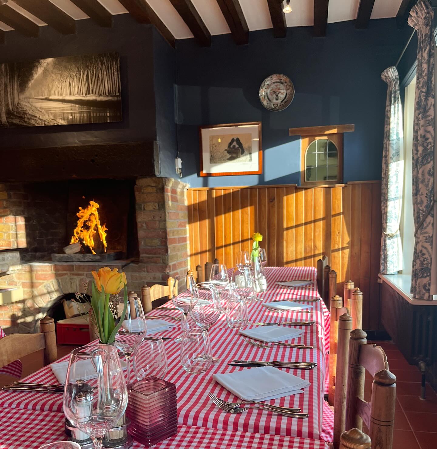 Op de dessertkaart staan crêpes flambée. Vroeger werden deze aan tafel geflambeerd. Helaas gebeurt dit om veiligheidsredenen nu in de keuken, maar dat maakt het dessert niet minder lekker.