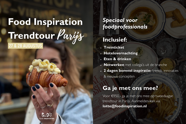 Wil je ook ontdekken welke trends uit Parijs interessant zijn voor jou? Meld je dan aan voor de Food Inspiration trendtour naar Parijs op 27 en 28 augustus: