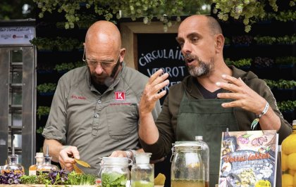 In deze nieuwe industriële setting met robuuste elementen worden de Food Inspiration Days in een nieuw jasje gestoken. Hans Steenbergen geeft aan dat ‘Reconnect’ het thema van dit jaar is. ‘De grote opdracht voor de komende jaren is het herstellen van de verbinding tussen consument en foodproducent, tussen mensen en de seizoenen en mensen met elkaar. De maaltijd in een restaurant dient dat hogere doel, met transparantie, integriteit en empathie als belangrijke waarden’, aldus Steenbergen. Reconnect voert als rode draad door de hele dag.