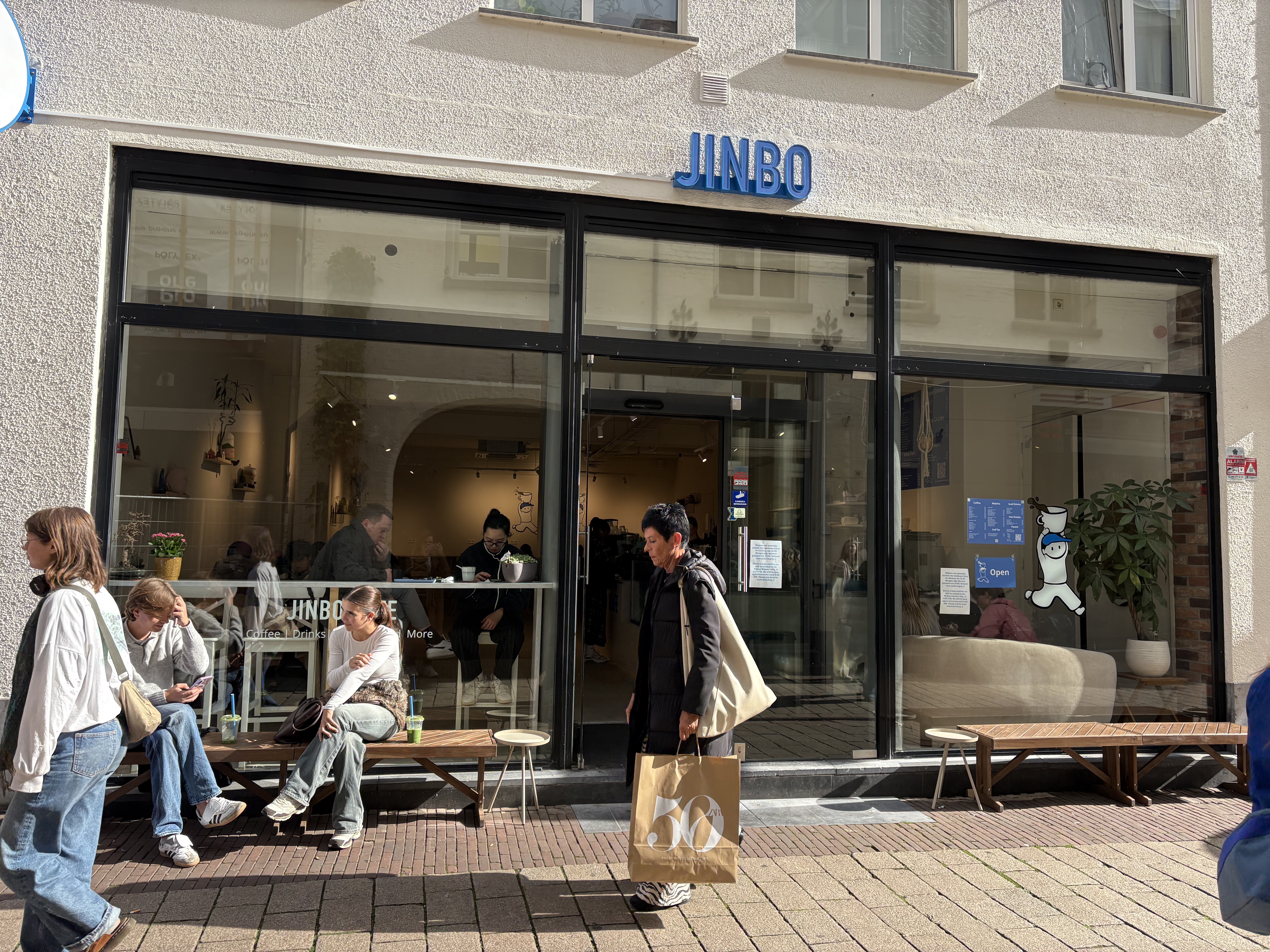 Ook in een provinciestad als Arnhem kom je tegenwoordig volop aan je matcha-trekken, onder andere bij Jinbo café. Deze koffiebar annex matchacafé opende eind 2024 de deuren en bevindt zich midden in het centrum. Hier kun je onder andere terecht voor een matcha pistache latte (warm of koud), matcha white chocolate latte of een matcha cookie. Tevens scoor je hier je persoonlijke portie puur matchapoeder (€65,- voor 100 gram). En natuurlijk heeft dit hippe concept - zoals het hippe concepten tegenwoordig betaamt - ook eigen tote bags met de naam van het matchacafé erop.