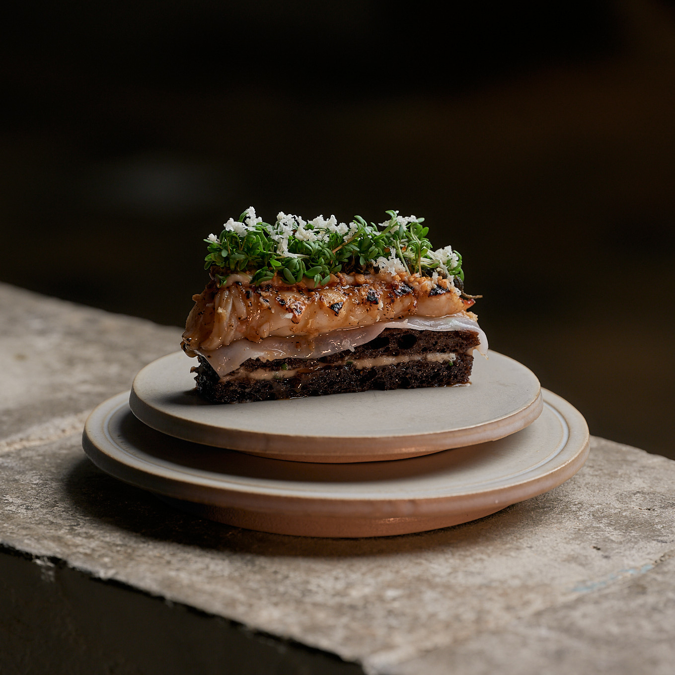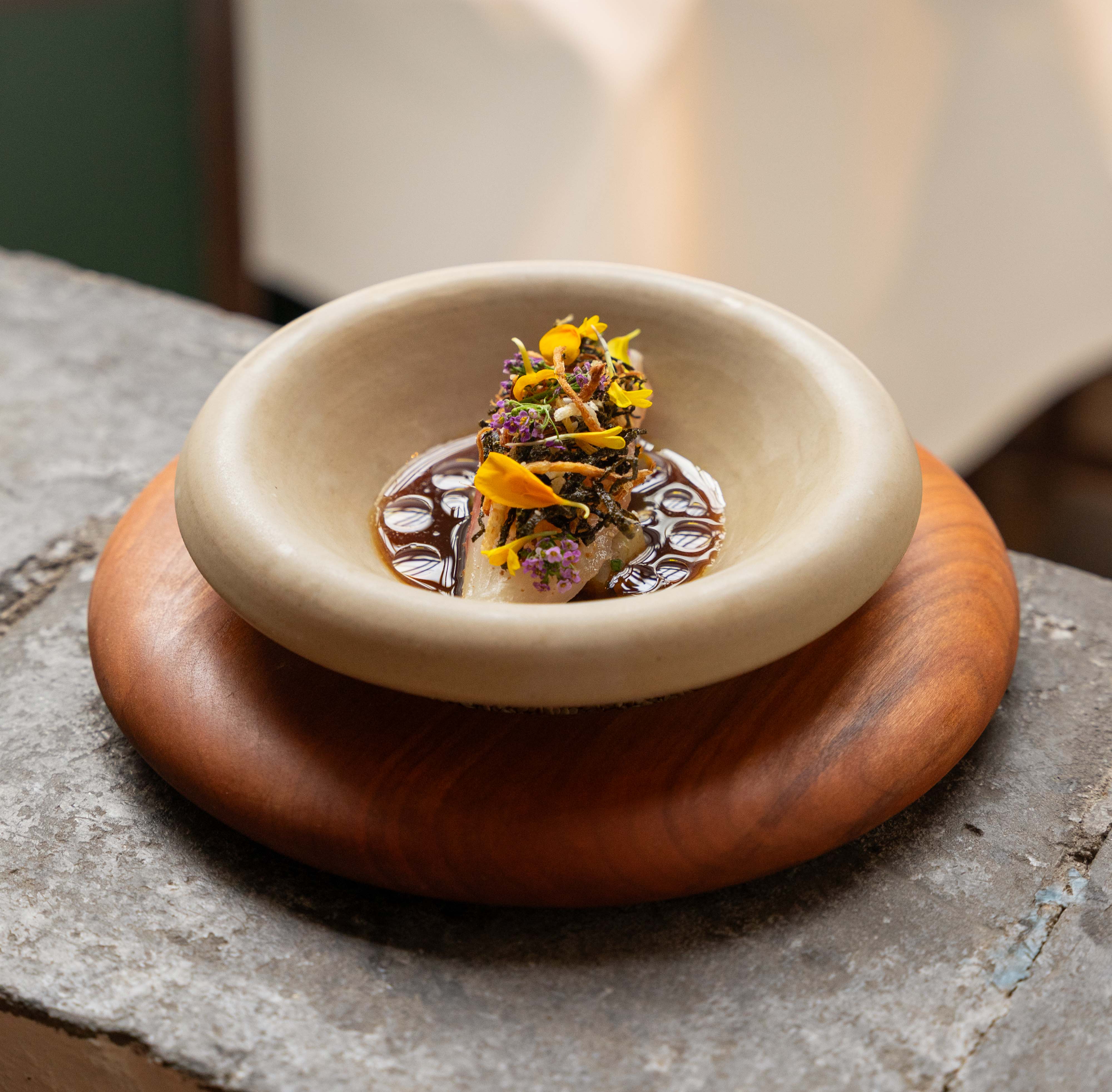 “Ik denk niet in gangen, maar in texturen en smaakopbouw. Ik begin graag rauw. Dat is fris.” Daarna zoekt hij molligheid. Zonder zware room, maar met oliën, broodgebonden sauzen en bonen. Peruaanse invloeden sluipen subtiel mee. Het zijn knipoogjes.” Daarna volgt vuur: met bereidingen van grill en rook. En na frisheid, uiteindelijk comfort. “Iets ronds zoals chocolade, of aardpeer met truffel.”