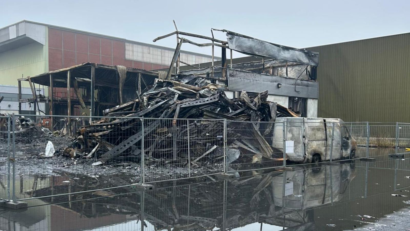 Een deel van de loods voor de brand