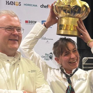 Chef Marco van der Wijngaard en zijn commis Yentl van Gilst zijn de winnaars van de HANOS Gouden Koksmuts 2026. Deze prestigieuze wedstrijd wordt ook wel het Nederlands kampioenschap voor koks genoemd. “Vijf keer is scheepsrecht”, aldus Van der Wijngaard vanaf het podium. Van der Wijngaard, voormalig rechterhand van André Gerrits van sterrenrestaurant ’t Amsterdammertje in Loenen aan de Vecht, nam in augustus 2025 sterrenrestaurant De Gieser Wildeman in het Zuid-Hollandse Noordeloos over. Vier keer eerder deed hij mee aan het NK-koken namens het restaurant in Loenen.