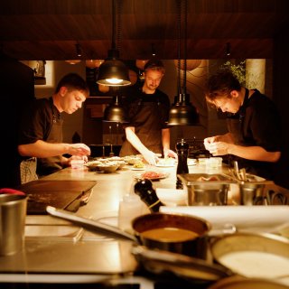 Aan de voorkant vormen Stam en sommelier Robin van Bastelaar de stabiele basis. “Robin is er vanaf de opening al bij.” Daarnaast werkt er een 19-jarige medewerker fulltime in de bediening. In de keuken staat Aukema met twee leerlingen van de Cas Spijkers Academie, een eerste- en een tweedejaars, aangevuld met twee stagiaires. Er is geen enkele fulltime kok met een afgerond diploma in dienst.