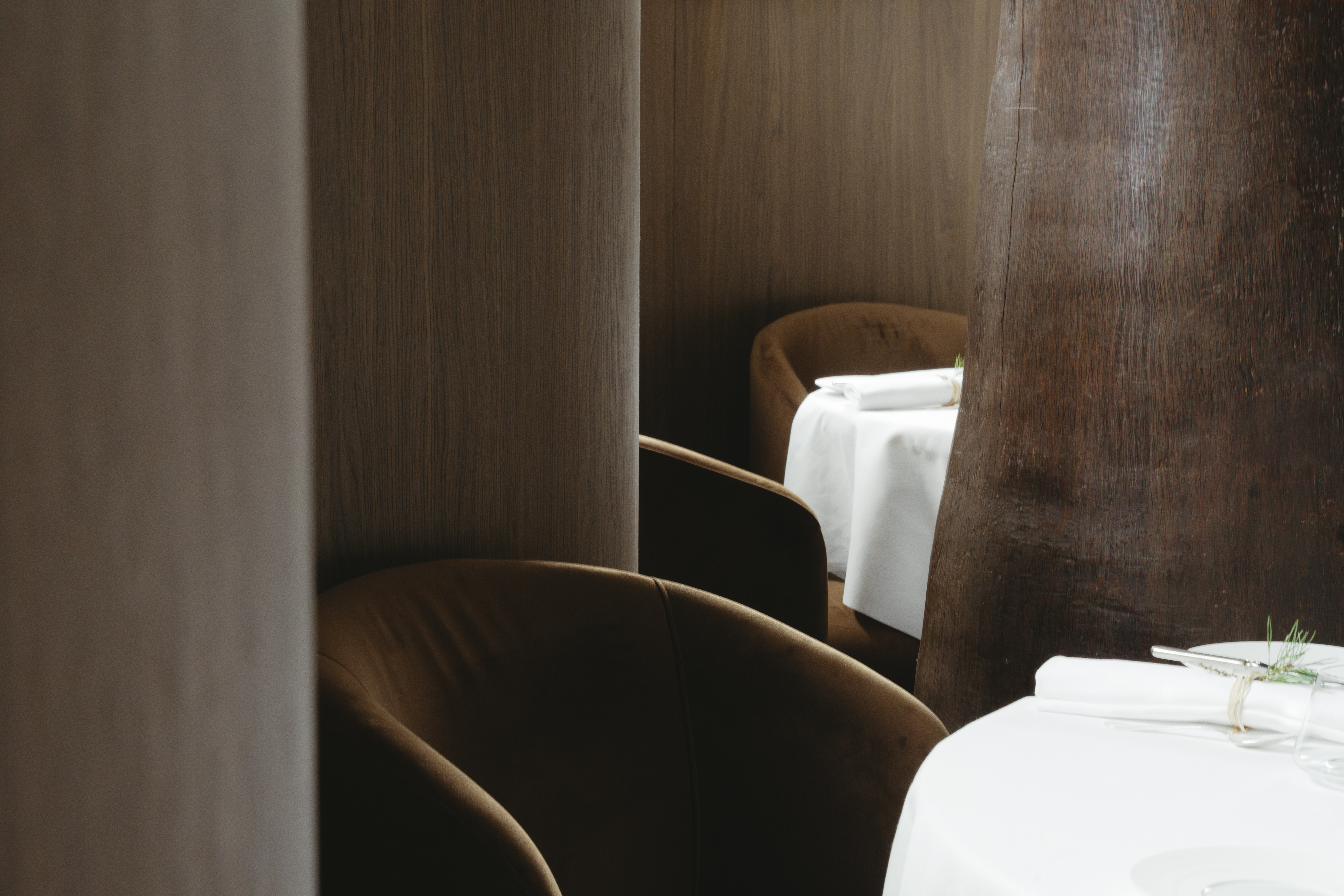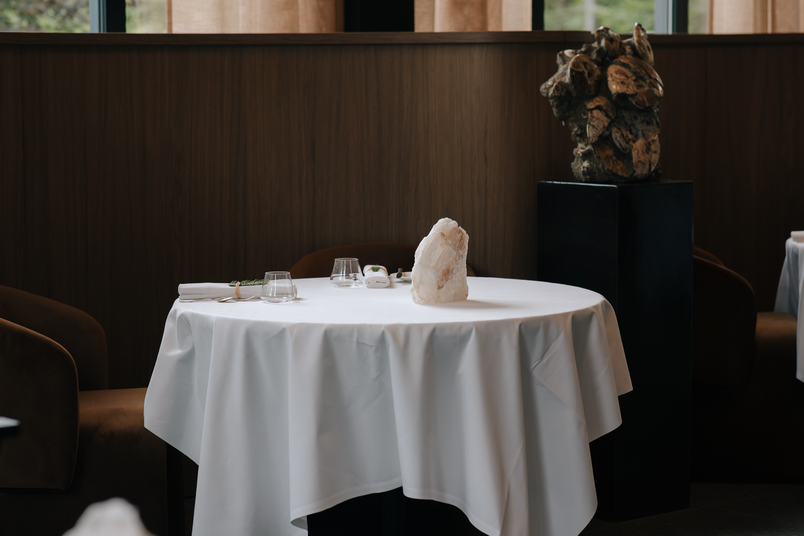 Het draait om de totale fine-diningbeleving. Alles benadrukt de connectie met de natuur. Het interieur, de gebruikte materialen, de kwaliteit van het servies: alles draagt bij aan de restaurantervaring.